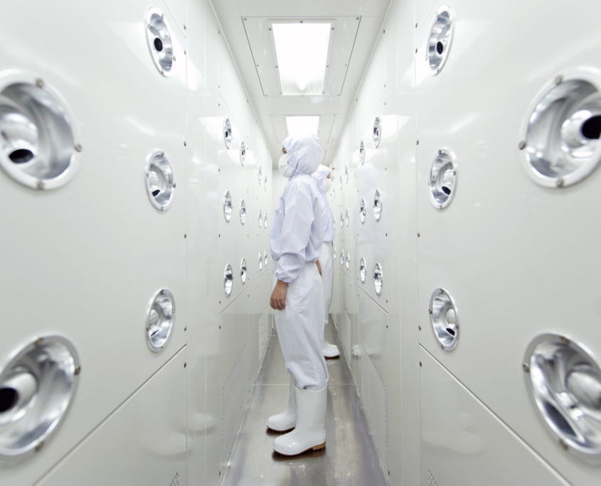 An Air Shower is a small chamber placed between the external environment and the cleanroom. It uses HEPA- or ULPA-filtered high-velocity air to remove particles from personnel and equipment.
