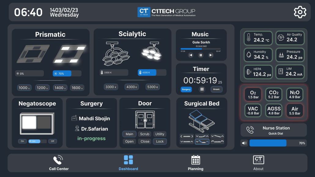 The Nurse Station serves as the main control center, enabling remote management and monitoring of all operating rooms.